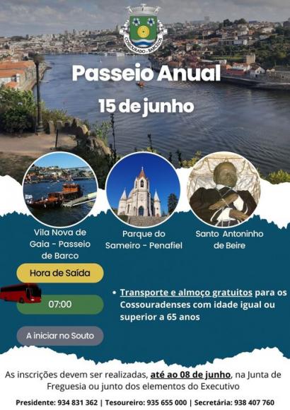 O passeio anual será no dia 15 de junho.Os interessados deverão efetuar a inscrição, na Sede da Junta de Freguesia ou junto dos elementos do Executivo, até ao dia 08 de junho.